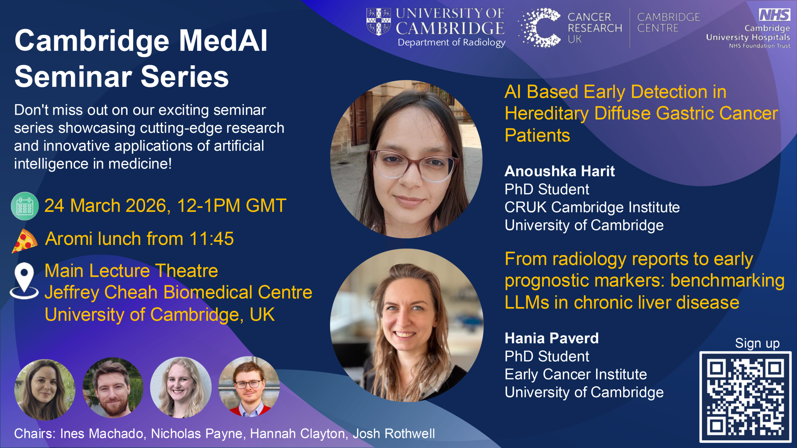 This month’s seminar will be held on Tuesday 24 March 2026, 12-1pm at the Jeffrey Cheah Biomedical Centre (Main Lecture Theatre), University of Cambridge and streamed online via Zoom.