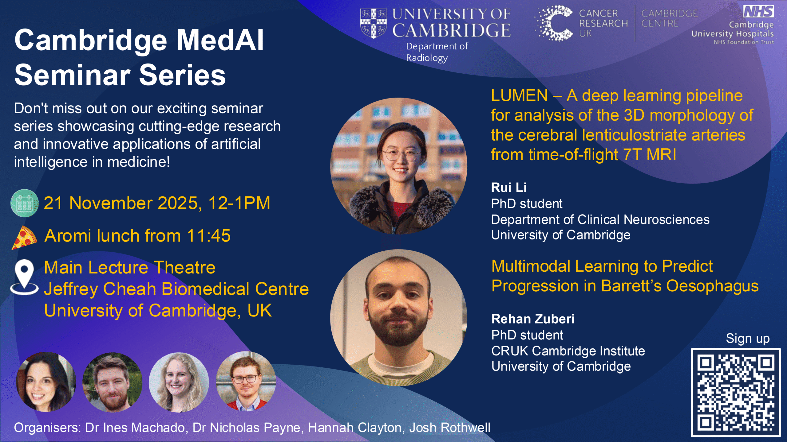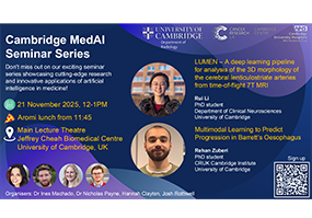 Rui Li and Rehan Zuberi present at the next Cambridge MedAI Seminar on Friday 21 Nov 2025, 12:00 -13:00 at the Jeffrey Cheah Biomedical Centre, Main Lecture Theatre.